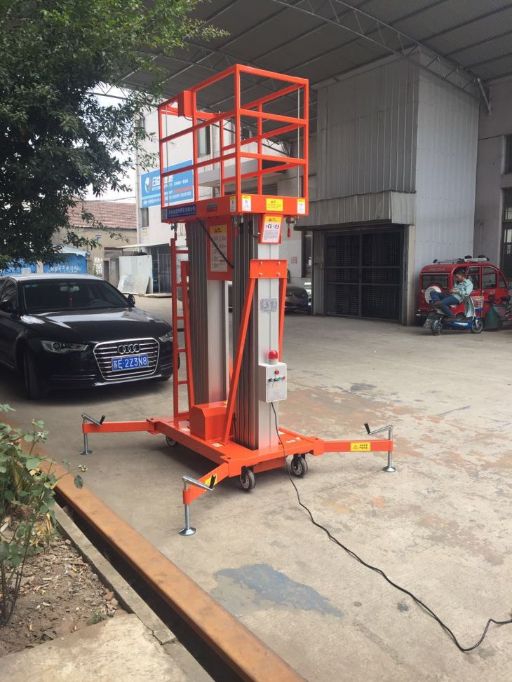 該系列產(chǎn)品高度有6-12米可選,全新設(shè)計的新一代產(chǎn)品,整體采用高強度鋁型材精制而成由于型材強度高,使升降臺的偏轉(zhuǎn)與擺動小。采用雙桅柱式結(jié)構(gòu),載重量大,平臺面積大,穩(wěn)定性好,運轉(zhuǎn)靈活,推行方便。它輕盈的外觀。該升降機廣泛用于廠房、賓館、大廈、商場、車站、機場、體育場等。可用作電力線路、照明電器、高架管道等安裝維護,高空清潔等單人工作的高空作業(yè)。